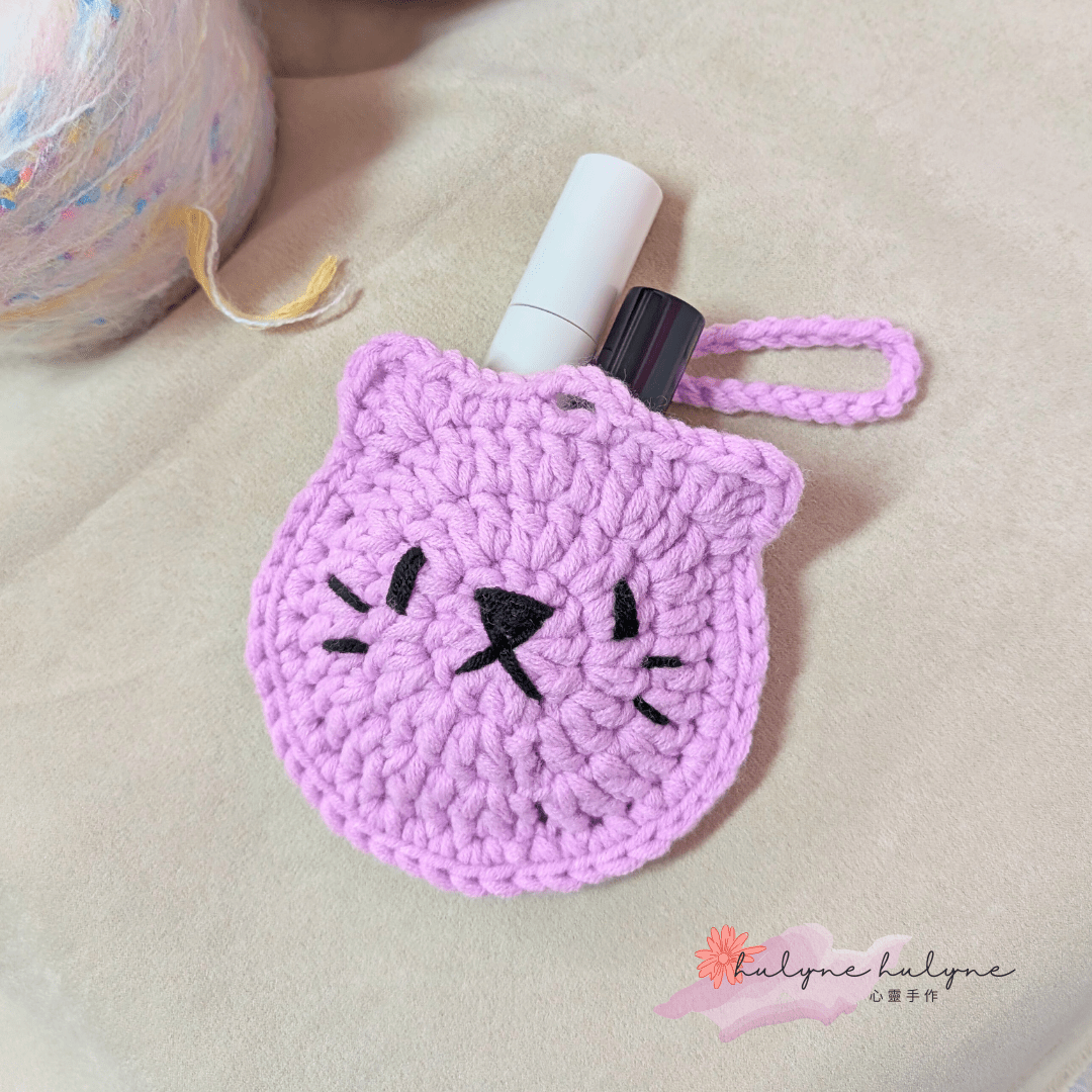 第五堂至~第六堂 : 貓貓小物包延續長針的練習,我們將增加一點難度,環形起針的方式鉤織出圓形,加上尖尖的耳朵與表情,可愛的貓貓掛在包包外就像帶著貓咪走。小物包可放置隨身小物,如口紅、AirPods等物品。